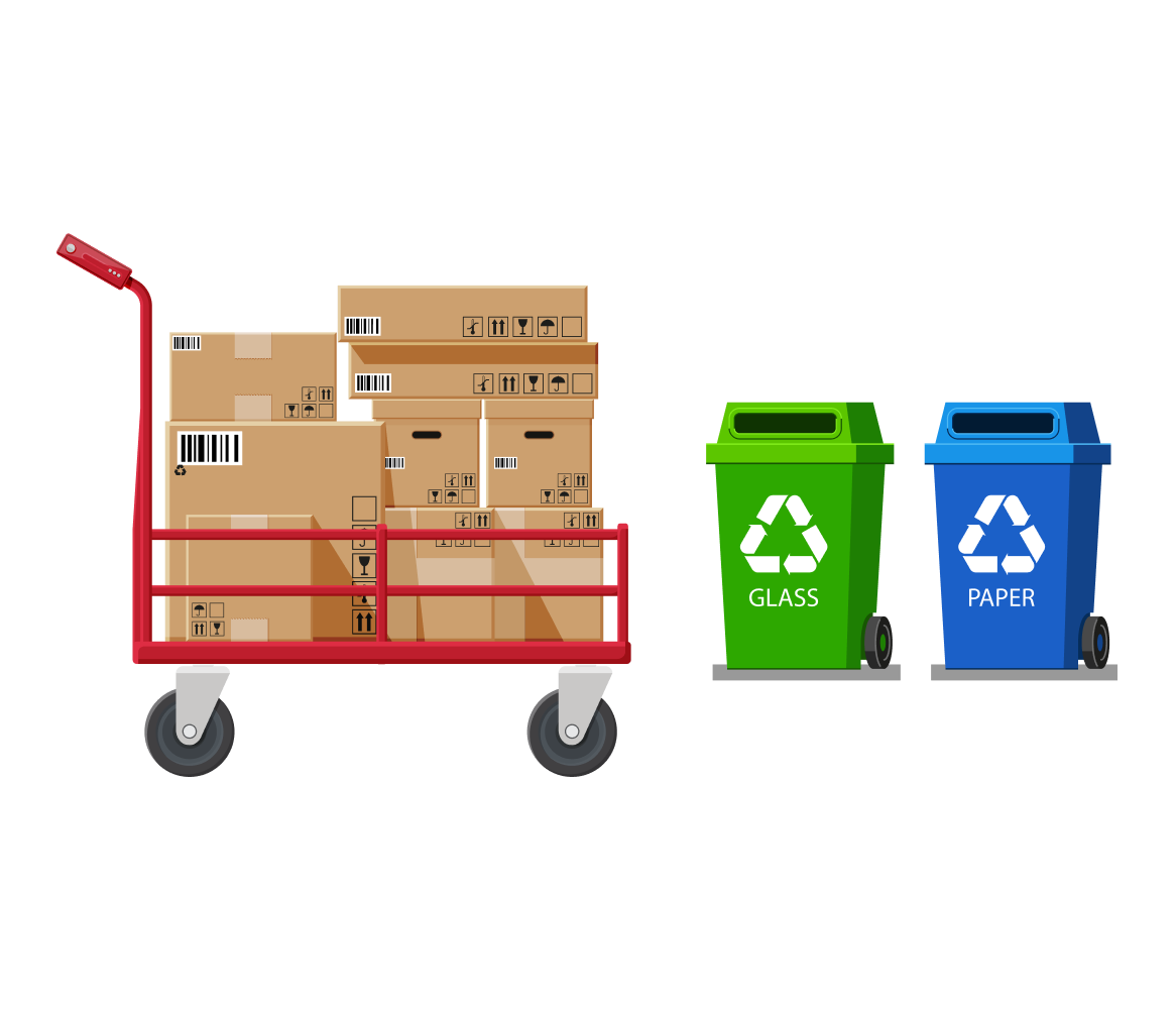 ・ロッカー近くに梱包材を開ける作業スペースとゴミ箱があると便利