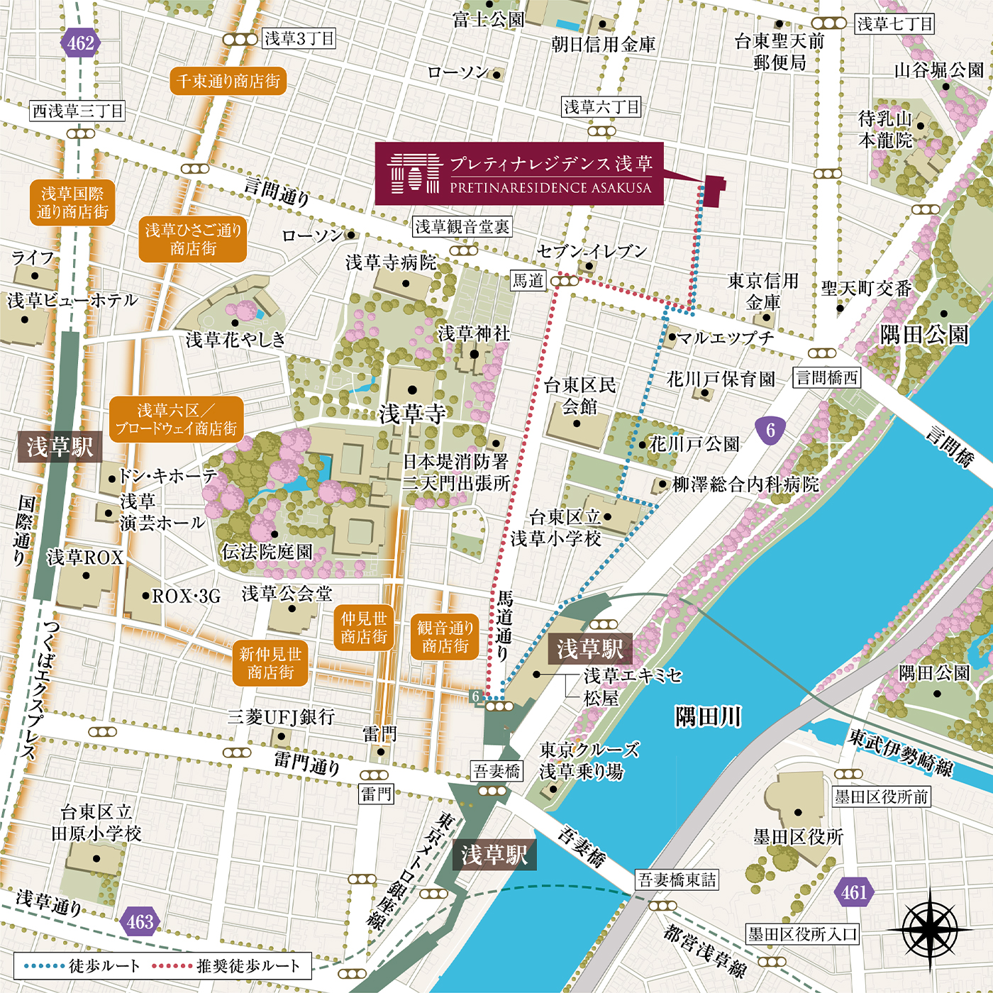 ※推奨徒歩ルートは東京メトロ銀座線「浅草」駅までの最短ルートとは異なります。