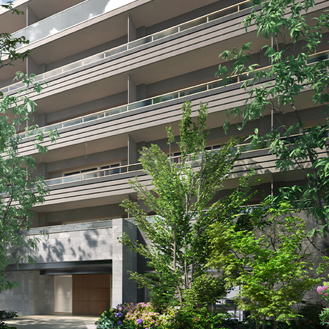 ケヤキのシンボルツリーが優雅にお迎えします。