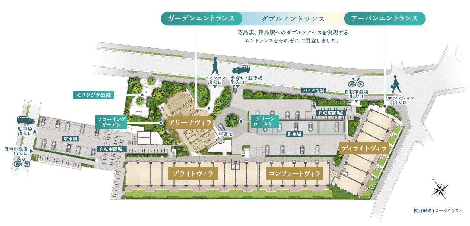 駐輪場は2つの駅から利用しやすい2カ所に設置。出し入れしやすい平置式とスライドラック式をご用意。