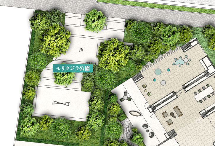 お車の乗り降りや積み下ろしなどもスマートにできるよう、メインエントランス前に車寄せを設けました。シンボルツリーを周回するような優雅なグリーンロータリーとすることで、機能的な動線と美しい景観創造にも配慮しています。