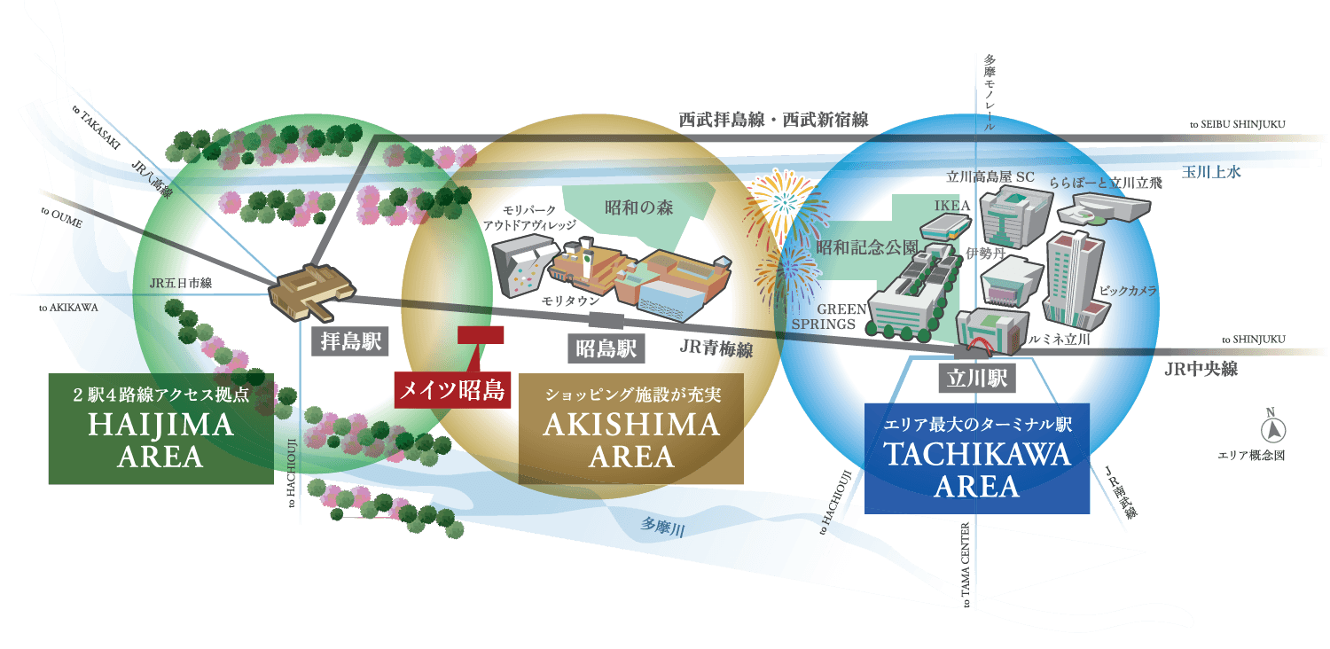 「昭島」駅、「拝島」駅の生活圏を利用可能。
