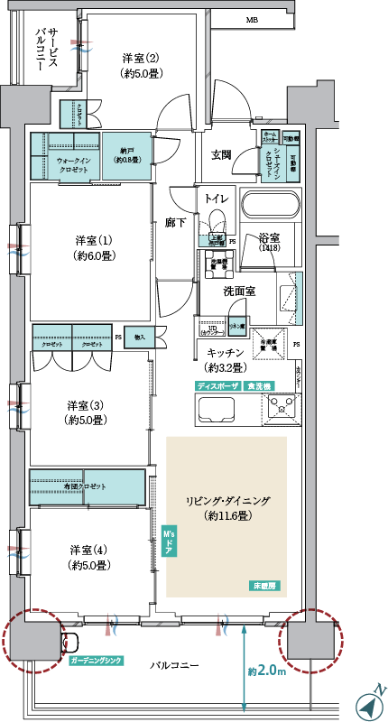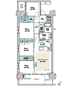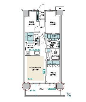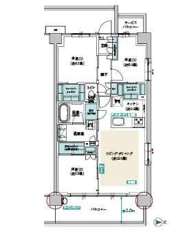 サービスバルコニー / 2.79㎡(約0.84坪)