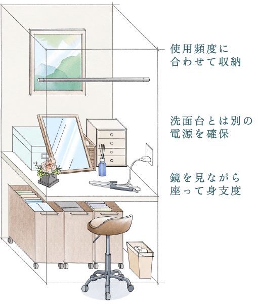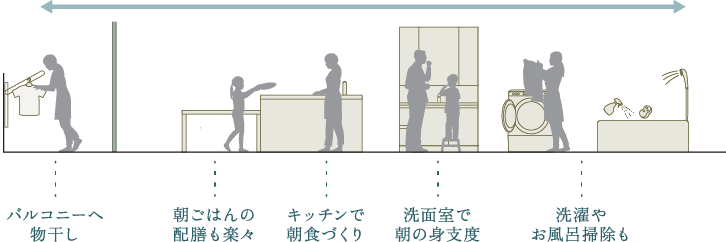 洗面室には「衣類等の収納」、「洗濯にまつわる作業」、「身支度」などを快適に使い分けることができる多機能スペース「UD」を採用。ライフスタイルや家族ひとりひとりのニーズに応える新発想空間です。