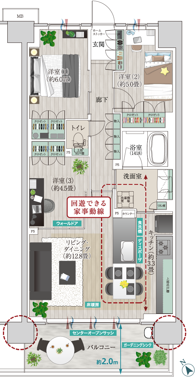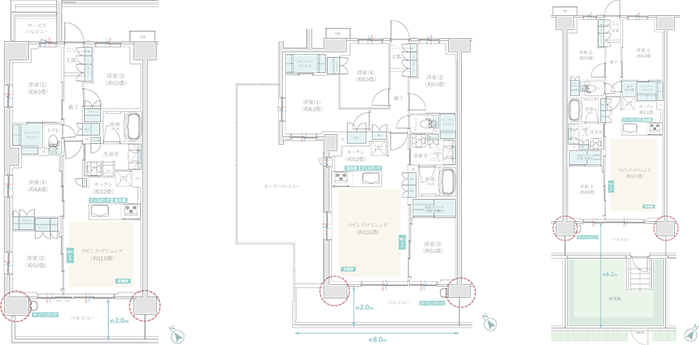 平均専有面積70㎡超、専用庭付き、ルーフバルコニー、