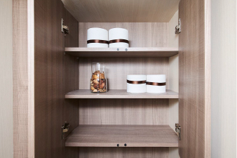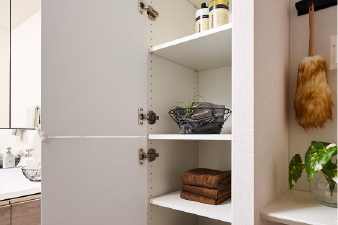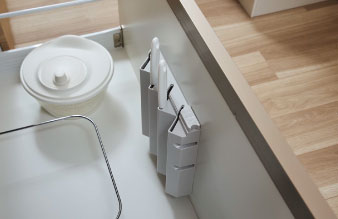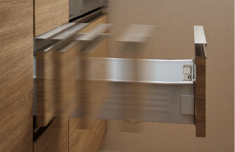 引き出し式のキャビネットは、ブルモーションレールの採用で、やさしくソフトに閉まります。