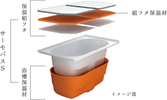 保温組フタと浴槽保温剤のダブルの保温構造で、4時間後の温度低下は2.5℃以下。