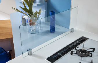 ガラス製で視線をさえぎらず、料理中もお互いの様子が見えるのがポイントです。