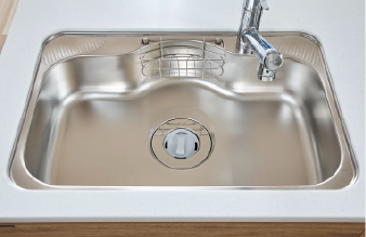 水はね音を抑える静音仕様。大きな中華鍋も洗いやすい十分な広さを備えたシンクです。