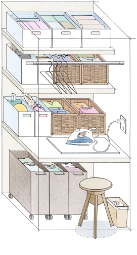 家族それぞれの洗濯物を、その場でバスケットに収納。