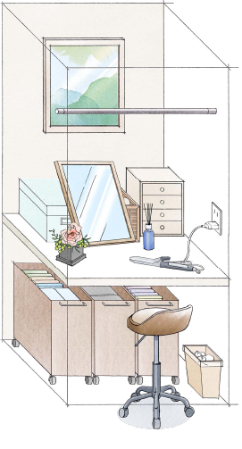 座ってメイクアップできるドレッサースペースに。