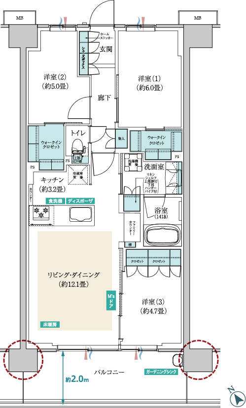 バルコニー面積 / 12.00㎡(約3.63坪)