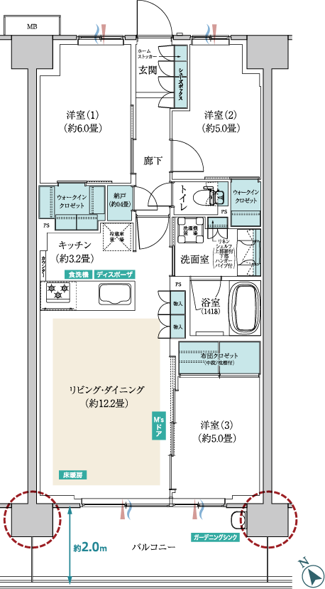 バルコニー面積 / 12.00㎡(約3.63坪)