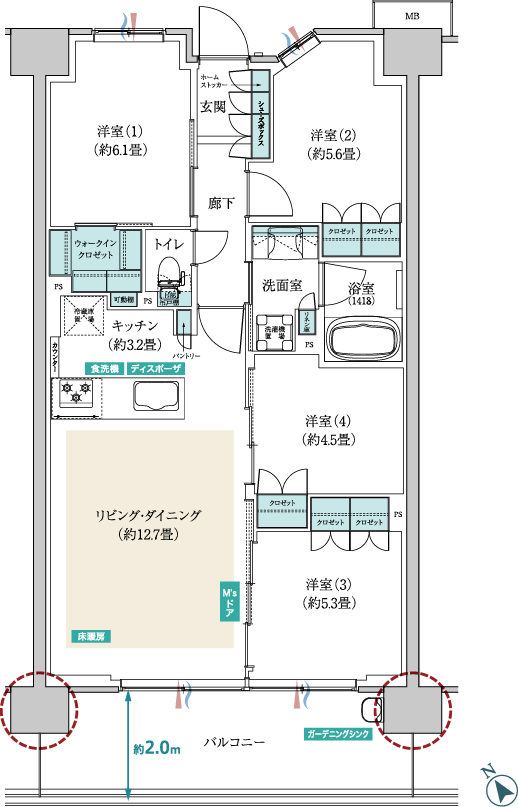 ※掲載の間取りは計画段階の図面を基に作成したものであり、記載内容は変更が生じる場合があります。予めご了承ください。 ※掲載の間取りは正式な図面集の前段階のもので、設備・下り天井等の記載を省略しています。 ※プランの特長を表すピクトグラムのイラストは実際とは異なります。