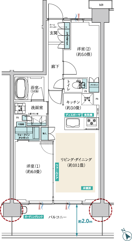 バルコニー面積 / 11.10㎡(約3.35坪)