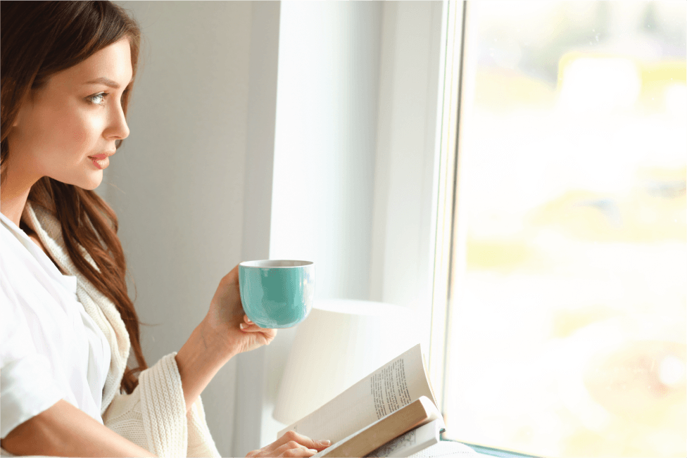 窓の外を眺めながら伸び伸びと開放的に読書や勉強ができます。