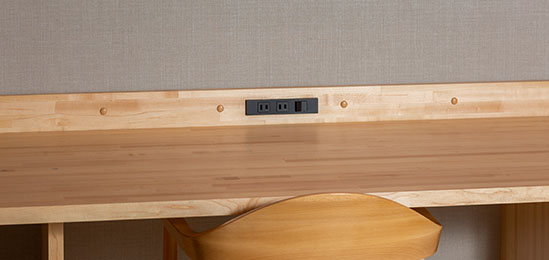 和の趣を纏う「セントラルラウンジ」は、コンパクトながら多機能な空間。テレワークやオンライン学習、読書や友人とのおしゃべりなど、シーンとニーズに合わせて思い思いに活用できます。