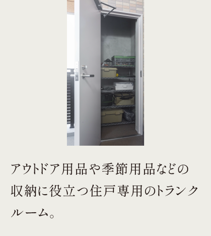 - ■アウトドア用品の収納に最適なトランクルームや、引き戸仕様のウォークインクロゼットを全居室に採用。