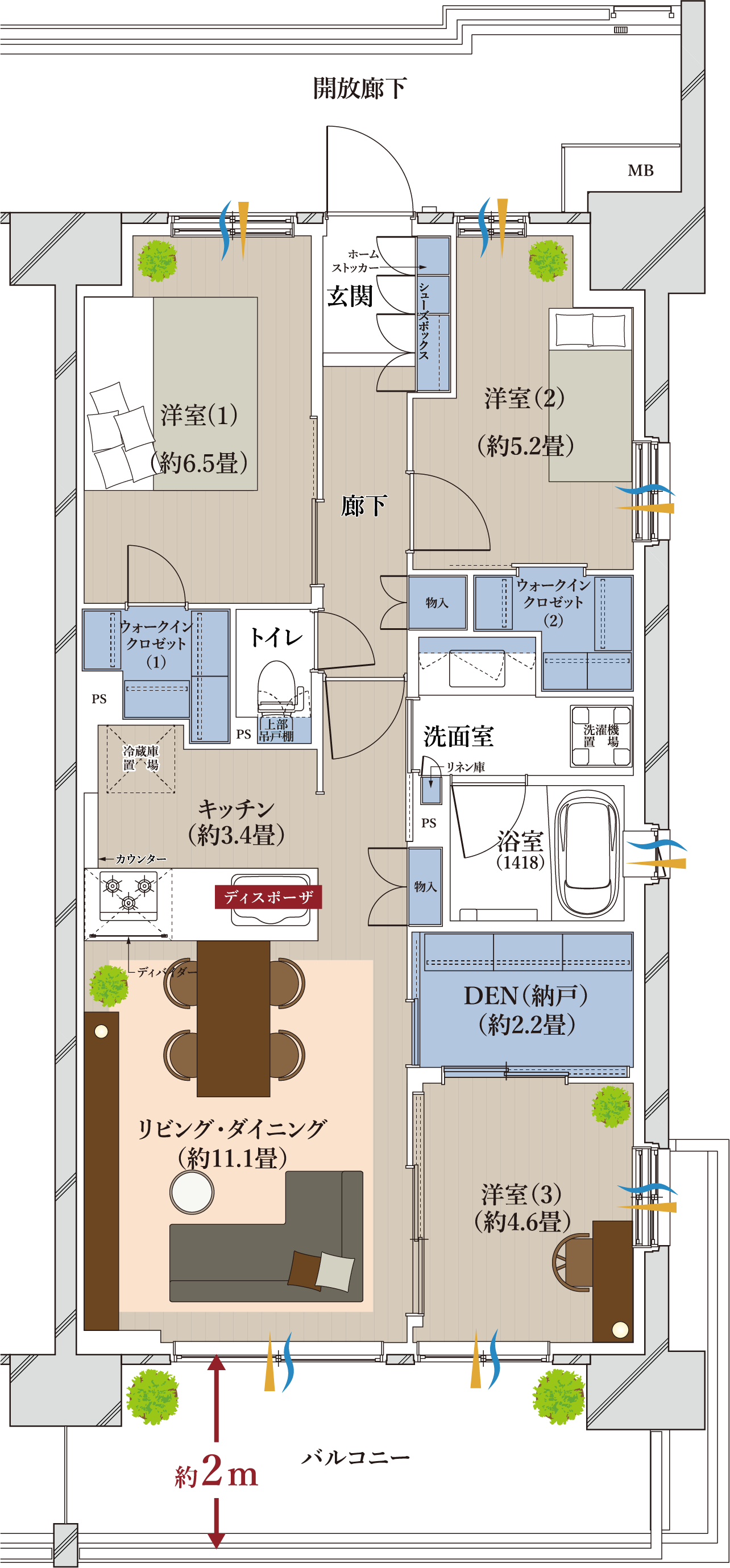 DEN=納戸 WIC=ウォークインクロゼット