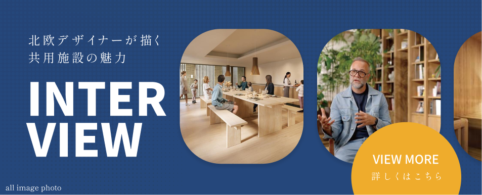 共用空間を美しくモダンに飾るインテリアは、北欧をはじめ欧州各国の家具を取り揃えるACTUS(アクタス)がコーディネート。吟味された品々がホテルライクな上質の空間を演出します。