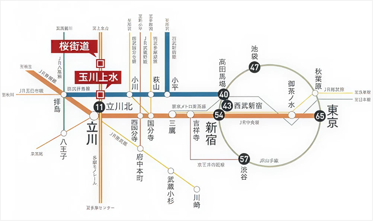 「モノレールだけと思われがちですが、「玉川上水」駅から西武拝島線(西武新宿線に乗入れ)で「高田馬場」や「西武新宿」駅へ1本。JR山手線に出るにも実は便利。モノレールは「立川」でJR中央線に乗換えられる他、「高幡不動」から京王線へも乗り換えられます。」(Hさん・20代)