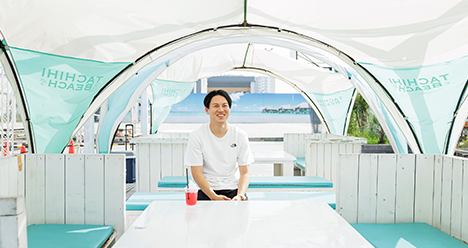 タチヒビーチは、街中でビーチスポーツやバーベキューが楽しめる人気のスポット。家族や友人とよく来るそう。