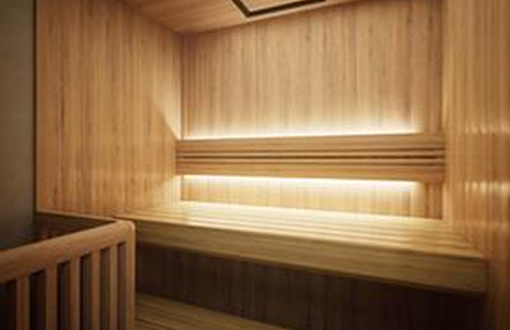 宿泊もできるゲストルームには、1日の疲れを癒せるサウナルームが。フィンランド発祥のサウナ文化を日本に広めたMETOS(メトス)監修で、本場のサウナを気軽に楽しめます。