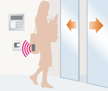 エントランスの来訪者を住戸内で確認してから解錠できるオートロックシステム。ご入居者がエントランスを開ける際は、バッグ等にキーを入れたまま解錠できるキーを採用。安心感と利便性を両立しています。