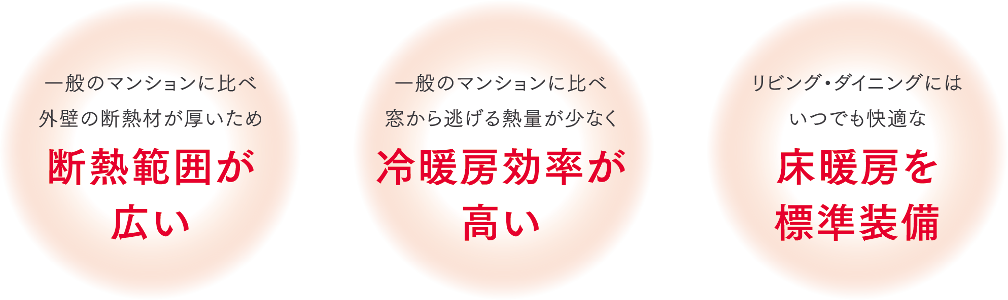 熱を逃さず、電気やガスをなるべく使わずに暮らせる「高断熱」と、エネルギーを上手に使う「高効率設備」で光熱費などのランニングコストを軽減します。地球温暖化の原因となる温室効果ガスの排出を抑えることにもつながり、住まう方はもちろん環境にも優しい住まいです。